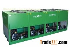 Modular industrial cooling units, air cooled, with pump and water vessel, shell and tube evaporator, centrifugal or axial fan(s). Four compressors, four refrigeration circuits, cooling capacity from 124 a 404 kW.